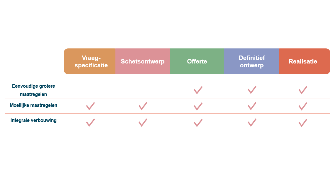 Idealiter is de vraag van de bewoner van dusdanig goede kwaliteit dat in volgende fasen marktpartijen direct een goede offerte kunnen maken en de inhoud van eventuele concurrerende offertes makkelijk is te vergelijken door de bewoner.